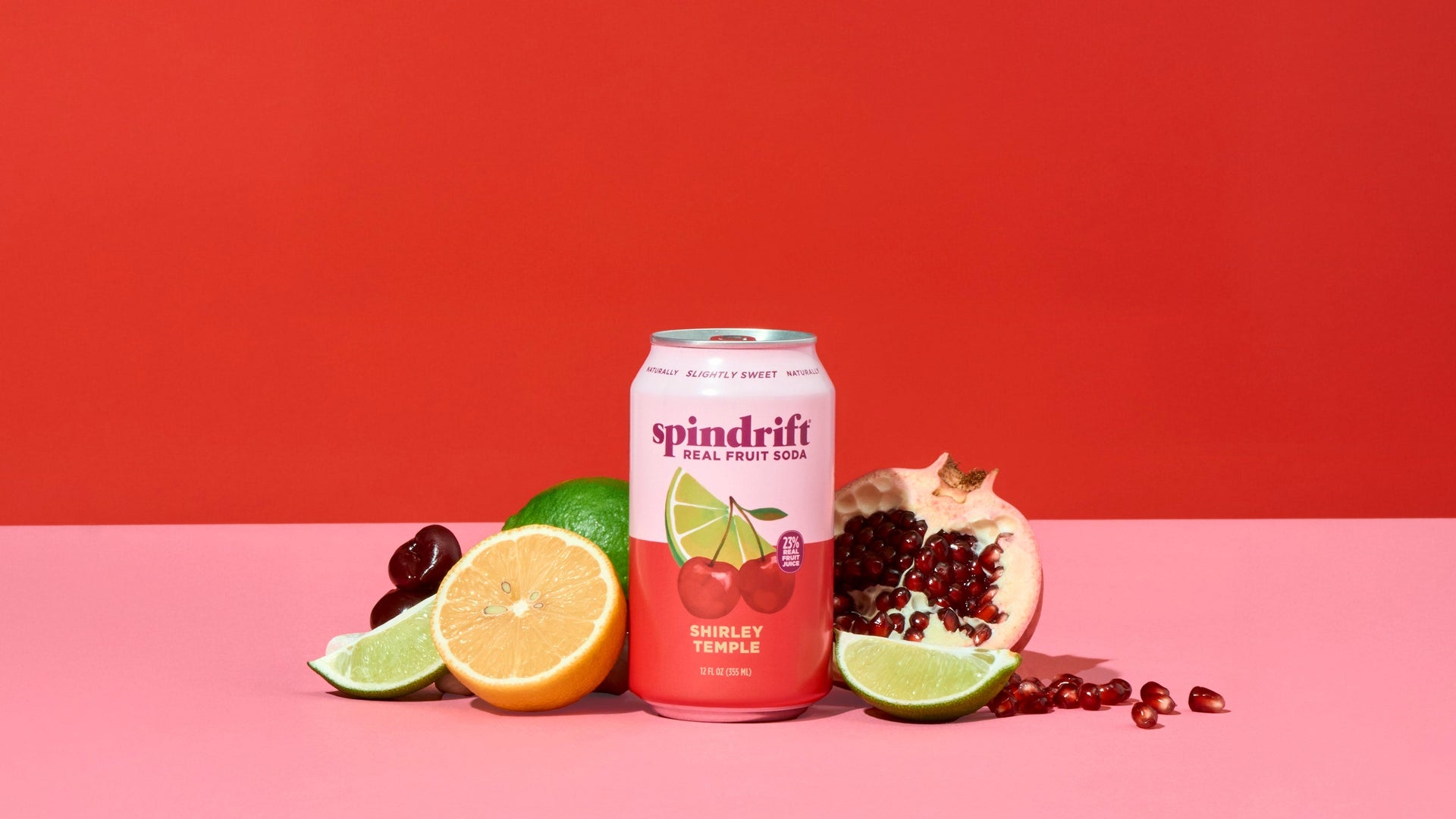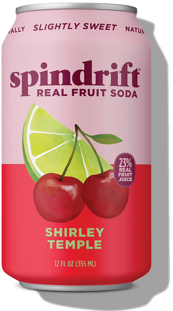 A crowd-pleaser for the ages, Spindrift® Shirley Temple is all about taste. From real squeezed fruit not from added sugar or engineered sweeteners. With real cherry puree, pomegranate juice, tart cherry juice, apple juice, and citrus - never from concentrate. Pour it over ice, add a cherry, and enjoy every sip.